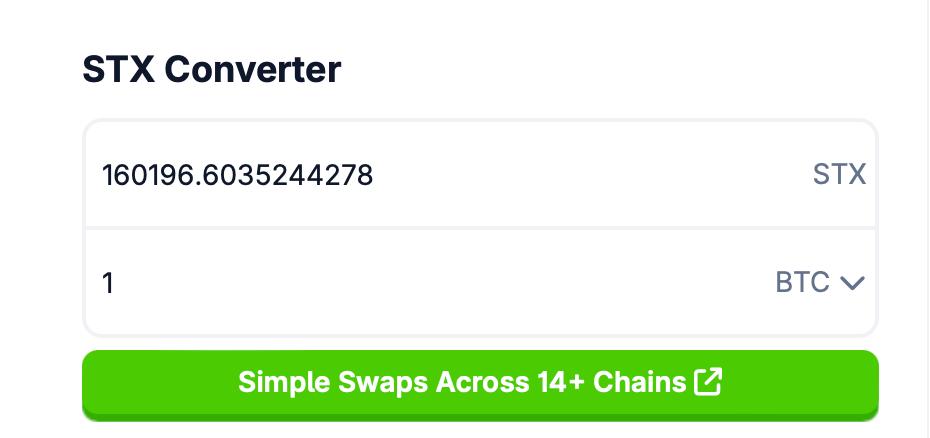 - 1.00000000 BTC swapped to 160,196.603524 STX: