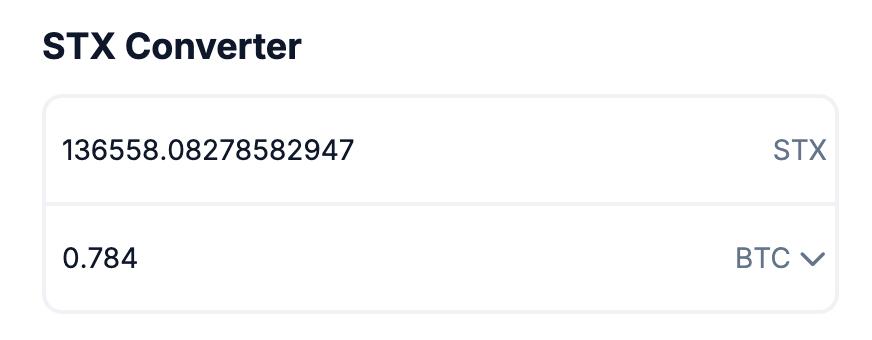 - 0.78412747 BTC swapped to 136,558.082786 STX: